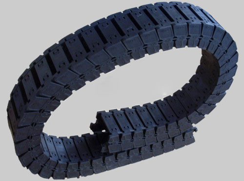 (1)拖鏈外形似坦克鏈,由眾多的單元鏈接組成,鏈接之間轉動自如。